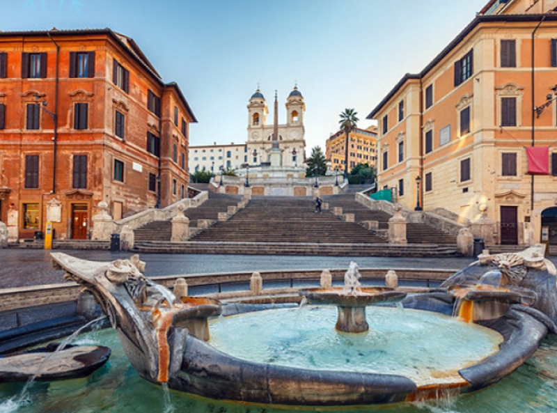 บันไดสเปน บันได 138 ขั้นที่ไม่เคยว่างโล่ง คลาคล่ำไปด้วยผู้คนหลากหลายสัญชาติ ที่มาเดินเล่นที่นี่ ละแวกนี้ไม่ได้เป็นย่านของชาวสเปนแต่อย่างใด แต่เป็นเพราะในอดีต สถานทูตสเปนมาตั้งอยู่บริเวณนี้ จึงถูกเรียกบริเวณนี้ว่า “ บันไดสเปน ” บริเวณนี้มี ร้านค้าแบรนด์เนมชื่อดังตั้งเรียงรายอยู่มากมาย ไม่ว่าจะเป็นหลุยส์วิตตอง (Louis Vuitton) ชาแนล (Chanel) แอร์เมส (Hermes) ฯลฯ ถึงเวลาของขาช้อปกัน แล้ว ขอให้ตระเตรียมความพร้อมเพื่อจับจ่ายซื้อกระเป๋า เสื้อผ้า รองเท้า กันได้ อย่างเต็มที่ในบริเวณนี้ เพราะราคาที่นี่ถูกกว่าในเมืองไทย เนื่องจากได้ภาษีคืนมา ใครช้อปเหนื่อย สามารถแวะพักดื่มกาแฟ ที่คาเฟ่เคร็กโก ร้านกาแฟเก่าแก่ ที่สุดของโรมได้ครับ