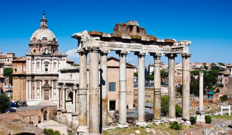 ภาพแห่งความรุ่งเรืองของโรมันยิ่งแจ่มชัดขึ้น ถ้าเดินขยับไปแถวโรมัน ฟอรัมหรือที่ชาวอิตาลี เขาเรียกกันว่า Foro Romano เสาหิน ซุ้มประตู และวิหารอันเก่าแก่ทอดตัวเรียงรายอยู่ตรงนั้น ในอดีตมุมนี้คือศูนย์กลางย่านการค้า การเมือง และ ศาสนาของกรุงโรม หนุ่มสาวใช้เป็นที่พบปะ สังสรรค์ คอการเมืองมีไว้นั่งสนทนาเรื่องปัญหา บ้านเมืองกัน ที่ ๆ สาวๆ มานั่งจับกลุ่มซุบซิบกันจนกระทั่งในยุคที่โรมันเข้าสู่ยุคเสื่อมถอย โรมัน ฟอรัมก็ถูกปล่อยให้เสื่อมโทรมตามสภาพ ทุกอย่างเริ่มผุพัง และแตกหักและไม่ได้รับการเยียวยา ถูกปล่อยให้ทิ้งร้าง