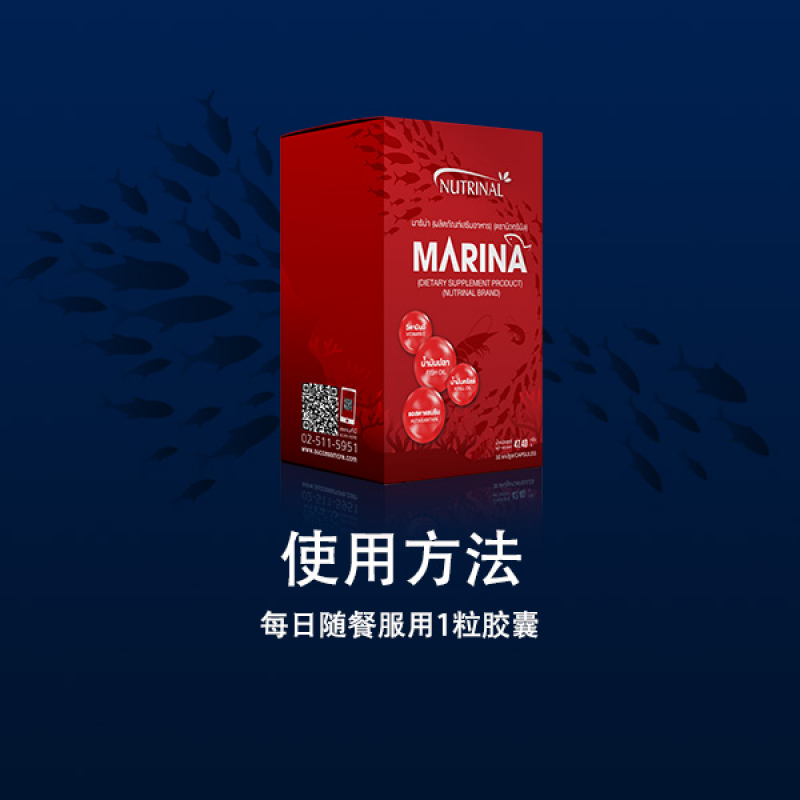 MARINA 含有鱼油,可提供 omega-3 脂肪酸、二十碳五烯酸 (EPA) 和二十二碳六烯酸 (DHA)。 它有助于降低胆固醇和甘油三酯。 此外,它还含有磷虾油、来自雨生红球藻提取物的虾青素和有助于预防心脏、血管疾病和高血压的维生素 E。