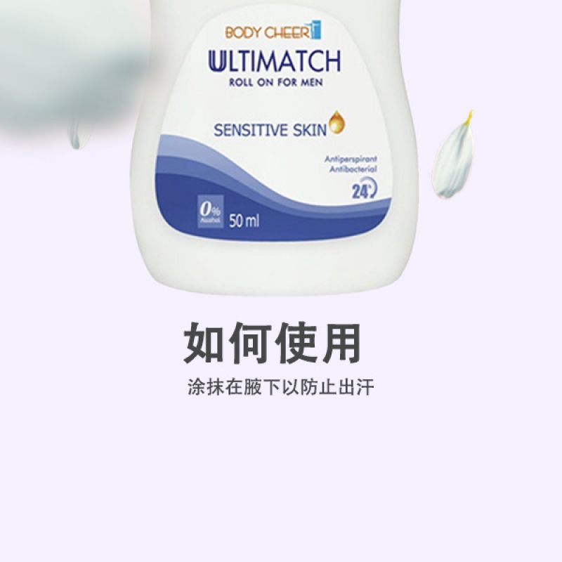 Ultimatch Roll On For Women 含有一些来自天然提取物的成分、维生素 B3 和无酒精成分。