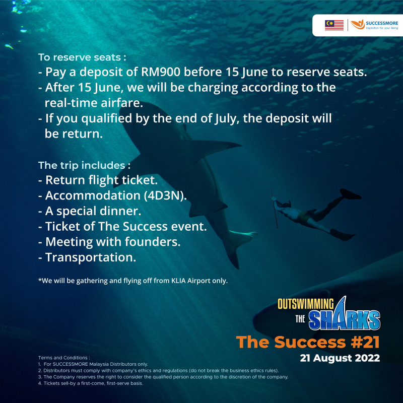 - Pay a deposit of RM900 before 15 June to reserve seats