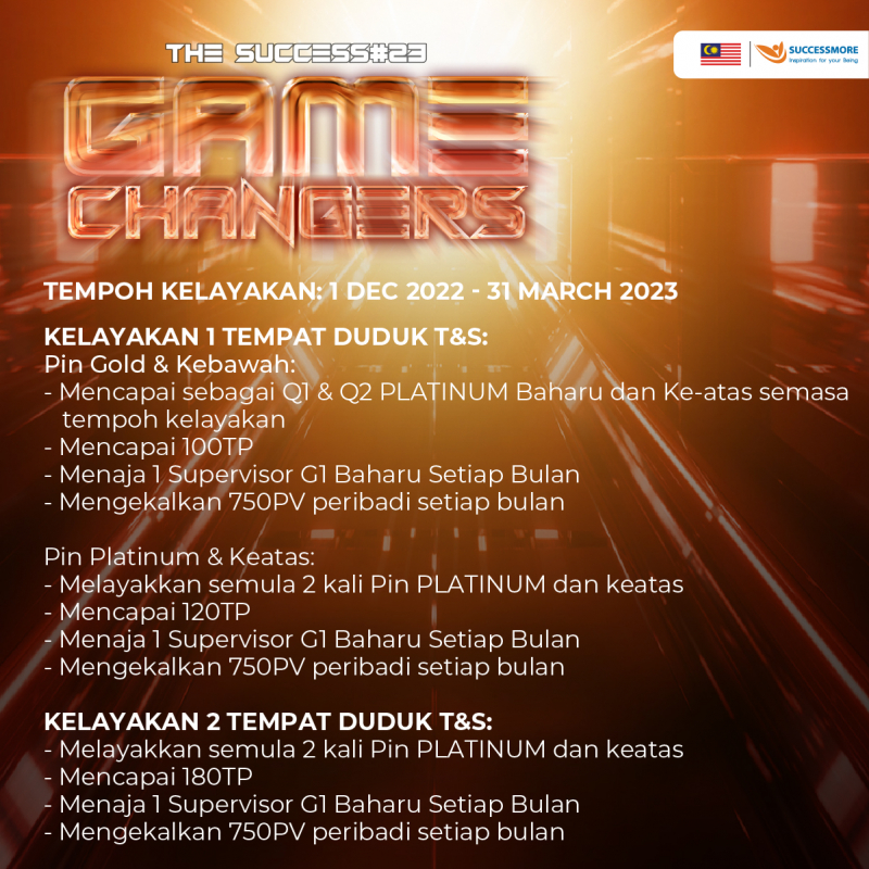 Success #23 Game Changers! Ingin menjadi Pengubah Permainan dalam hidup anda? Pastikan anda menyertai kami kali ini dan dengar pemimpin pelbagai negara berkongsi kisah kejayaan mereka dengan kami!