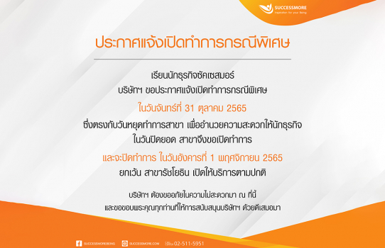 ขอประกาศแจ้งเปิดทำการกรณีพิเศษ