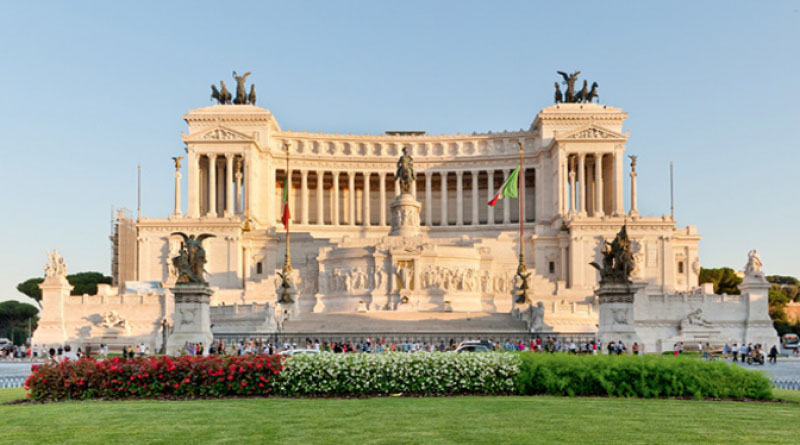 จัตุรัสเวเนเซีย จะเห็นอาคารขนาดใหญ่สีขาว มีอนุสาวรีย์อยู่ตรงกลาง พร้อมตกแต่งด้วยธงชาติ อิตาลีเต็มไปหมด สถานที่นั้นเรียกว่า “อนุสรณ์ สถานของวิคเตอร์ เอ็มมานูเอล ที่ 2” (Monumento a Vittorlo Emanuele II) สร้างขึ้นเพื่ออุทิศให้แก่ กษัตริย์วิคเตอร์ เอ็มมานูเอลที่ 2 กษัตริย์คนแรกของ อิตาลี และเพื่อเฉลิมฉลองการรวมประเทศอิตาลี ได้สำเร็จ จัตุรัสนี้มีลักษณะเป็นวงเวียน รถจะวิ่ง พลุกพล่านตลอดเวลา