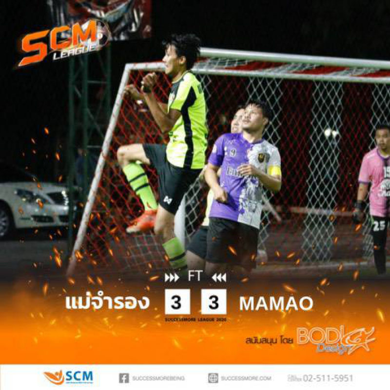 ส่วนทีมแม่จำรอง เสมอ ทีม MAMAO 3 : 3 เรียกว่าฟาดแข้งแบบไม่มีใครยอมใครเลยจริง ๆ ร่วมลุ้นเกมฟุตบอลมันส์ ๆ ไปพร้อมกันทุกวันจันทร์ – อังคาร แบบติดขอบสนามแมตช์ต่อแมตช์ได้ที่ Successmore thailand
