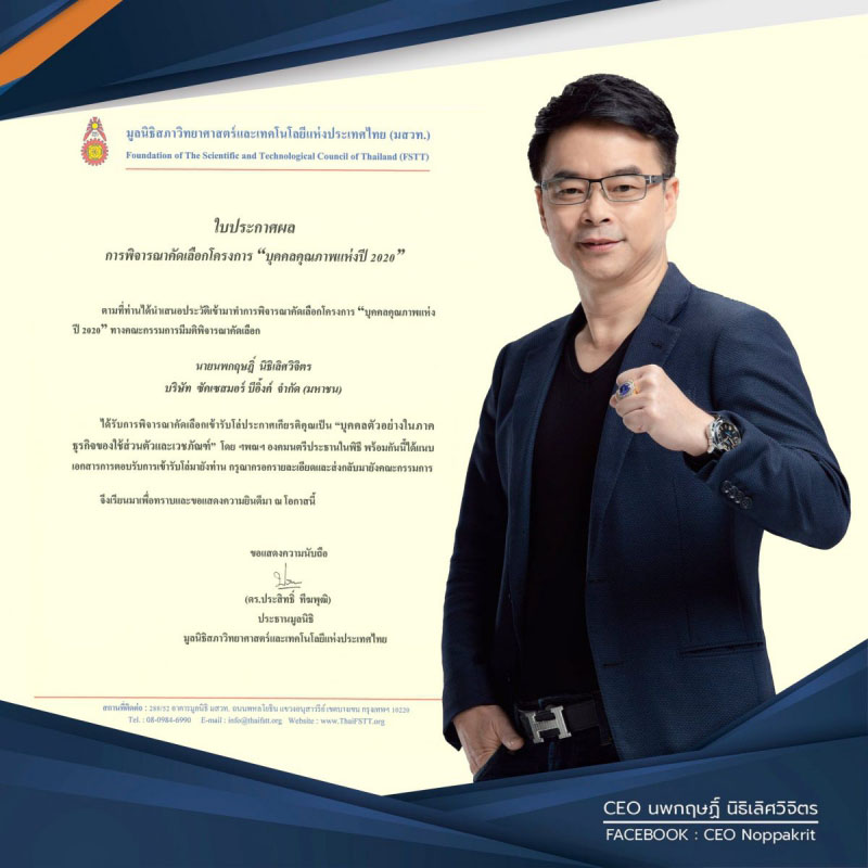 ที่สุดแห่งความภาคภูมิใจของ ชาวซัคเซสมอร์กับ Role model คนสำคัญ CEO นพกฤษฏิ์ นิธิเลิศวิจิตร ประธานเจ้าหน้าที่บริหาร นักบริหาร นักสร้างแรงบันดาลใจ ด้วยมายด์เซ็ทสู่ความสำเร็จ ผู้กุมบังเหียนอยู่เบื้องหลังความสำเร็จของ SCM ที่อุทิศตนส่งมอบสิ่งดีๆ สู่สังคมมาโดยตลอด ล่าสุดได้รับคัดเลือกให้เป็น “บุคคลคุณภาพแห่งปี 2020 สาขาธุรกิจของใช้ส่วนตัวและเวชภัณฑ์” จากมูลนิธิสภาวิทยาศาสตร์และเทคโนโลยีแห่งประเทศไทย (มสวท.) ภายใต้การสนับสนุนจากกระทรวงวิทยาศาสตร์ และเทคโนโลยี และสภาสมาคมวิทยาศาสตร์และเทคโนโลยีแห่งประเทศไทย (สสวท.) รางวัลอันทรงคุณค่า เพื่อประกาศเกียรติคุณ และยกย่องบุคคลที่ประสบความสำเร็จในการดำเนินชีวิต ทั้งชีวิตส่วนตัว การทำงาน และการอุทิศตนทำกิจกรรมเพื่อประโยชน์ต่อสังคม และประเทศชาติในด้านต่าง ๆ ซัคเซสมอร์มุ่งมั่นพัฒนาทุกภาคส่วน เพื่อความเติบโตอย่างยั่งยืนไปร่วมกัน