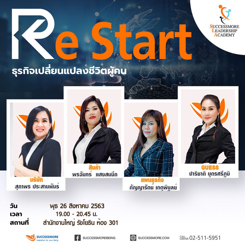 พบกับงาน Re-Start ธุรกิจเปลี่ยนแปลงชีวิตผู้คน โดย 4 สาวสวยสุดมากความสามารถ ที่จะมาร่วมแชร์ประสบการณ์ความสำเร็จแบบไม่มีกั๊ก