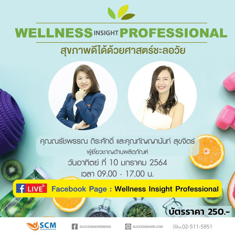 ใครที่อยากมีสุขภาพร่างกายแข็งแรง ดูอ่อนกว่าวัย พลาดไม่ได้กับงาน Wellness Insight Professional สุขภาพดีได้ด้วยศาสตร์ชะลอวัย พร้อมรับฟังเทคนิคดีๆ ในการดูแลสุขภาพ และคำแนะนำจากผู้เชี่ยวชาญที่จะมาบอกวิธีชะลอวัย ป้องกันความเสี่ยงการเป็นโรคเสื่อมของร่างกาย โดยคุณณรัชพรรณ ถิระศักดิ์ และคุณกัญญานันท์ สุขจิตร์ ในวันอาทิตย์ที่ 10 มกราคม 2564 เวลา 9.00-17.00 น. Live สดทาง Facebook Page : Wellness Insight Professional เท่านั้น บัตรราคา 250 บาท พร้อมจำหน่ายบัตรแล้วตั้งแต่วันนี้ที่ SCM ทุกสาขา