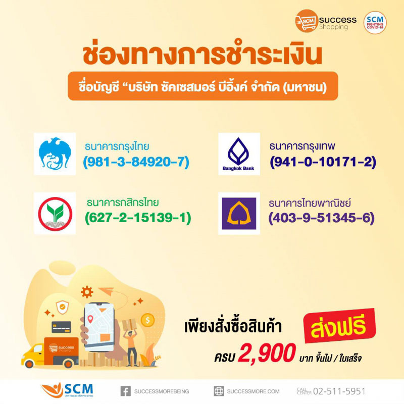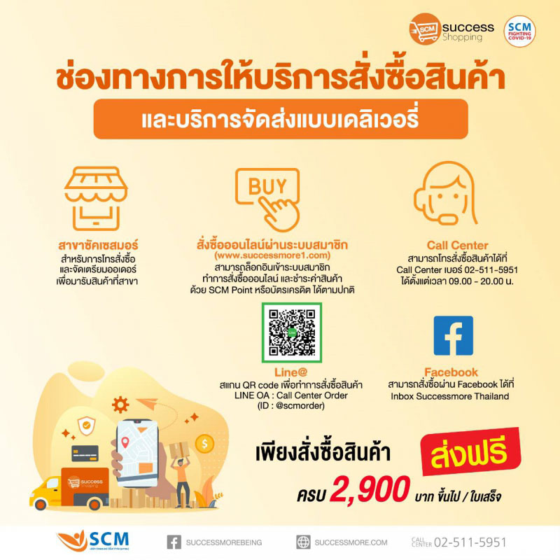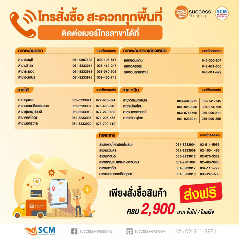 1. บริการสั่งซื้อผ่านโทรศัพท์ SCM ทุกสาขาทั่วประเทศ และ Call Center : 02-5115951 , เบอร์มือถือ 062-292-2264