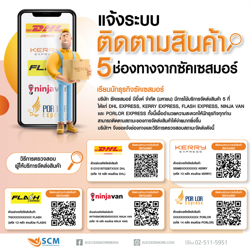 บริษัท ซัคเซสมอร์ บีอิ้งค์ จำกัด (มหาชน) มีการใช้บริการจัดส่งสินค้าจากผู้ให้บริการระดับขั้นนำของประเทศ ทั้งหมด 5 ราย ได้แก่ DHL EXPRESS, KERRY EXPRESS, FLASH EXPRESS, NINJA VAN และ POLAR EXPRESS