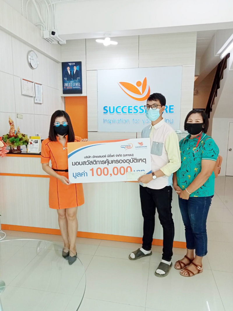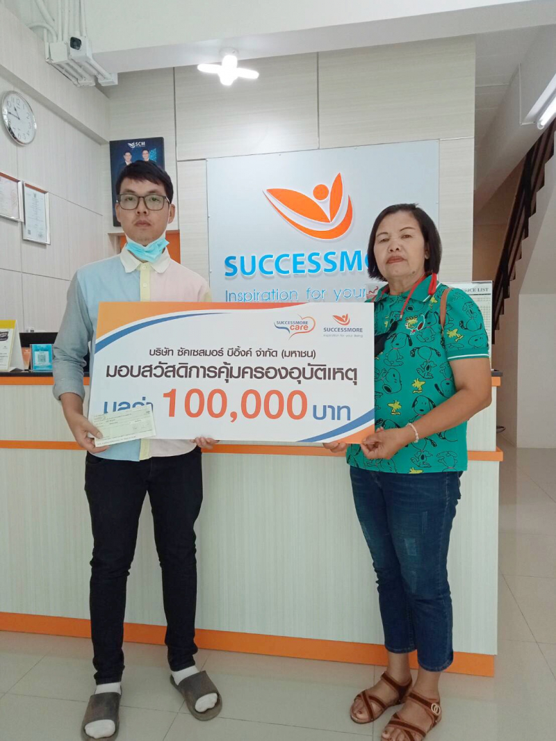 จำนวน 100,000 บาทให้กับครอบครัวผู้เสียชีวิต โดยมีคุณศราวุฒิ พลากุล เป็นผู้รับมอบ ณ สาขาซัคเซสมอร์ จ. อุดรธานี