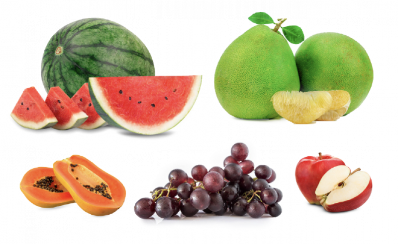 มะละกอสุก ส้มโอ องุ่น แตงโม