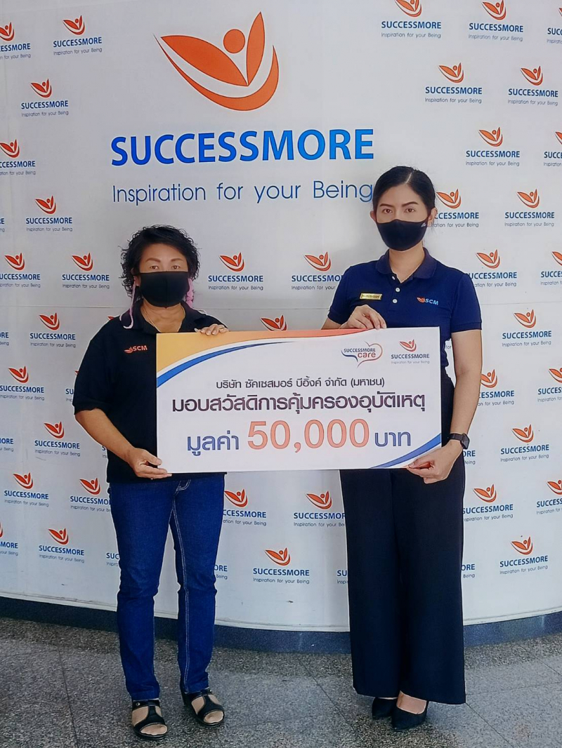 โดยมีตัวแทนของทางบริษัท ซัคเซสมอร์ บีอิ้งค์ จำกัด (มหาชน) มอบสวัสดิการคุ้มครองอุบัติเหตุ จำนวน 50,000 บาท