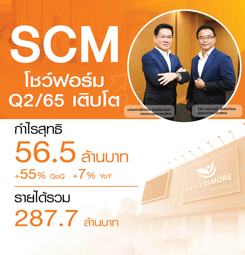 “SCM” โชว์ฟอร์ม Q2/65 เติบโต กวาดกำไร 56.5 ลบ. ประกาศย้ำครึ่งปีหลังโตก้าวกระโดด