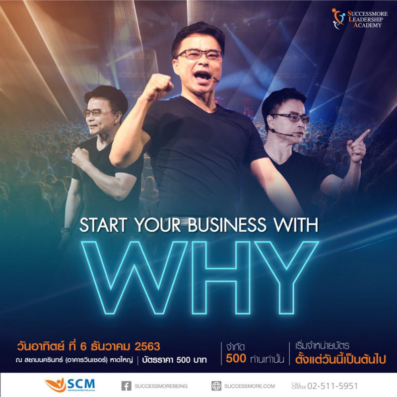 SCM ชวนชาวหาดใหญ่ มาจุดไฟในใจของคุณ ให้ลุกโชน ระเบิดพลังจุดประกาย สร้างแรงบันดาลใจไปพร้อมกัน ในงาน Start Your Business With WHY by CEO นพกฤษฏิ์ นิธิเลิศวิจิตร วันอาทิตย์ ที่ 6 ธันวาคม 2563 ณ สยามนครินทร์ (อาคารวินเซอร์) หาดใหญ่ พิเศษ!! บัตรราคา 350 บาท จากปกติ 500 บาท (ตั้งแต่วันนี้ – 30 พฤศจิกายน 2563)