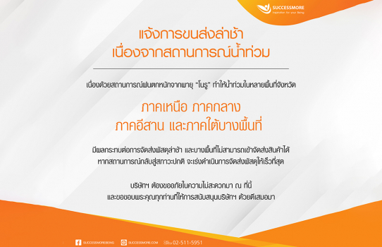 แจ้งการขนส่งล่าช้า เนื่องจากสถานการณ์น้ำท่วม