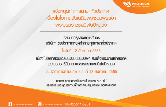แจ้งหยุดทำการสาขาทั่วประเทศ เนื่องในโอกาสวันเฉลิมพระชนมพรรษา