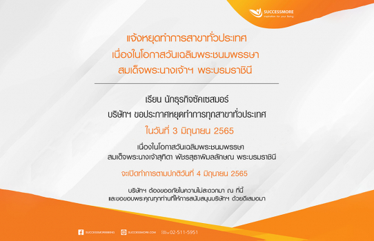 แจ้งหยุดทำการ เนื่องในโอกาสวันเฉลิมพระชนมพรรษาสมเด็จพระนางเจ้าฯ พระบรมราชินี