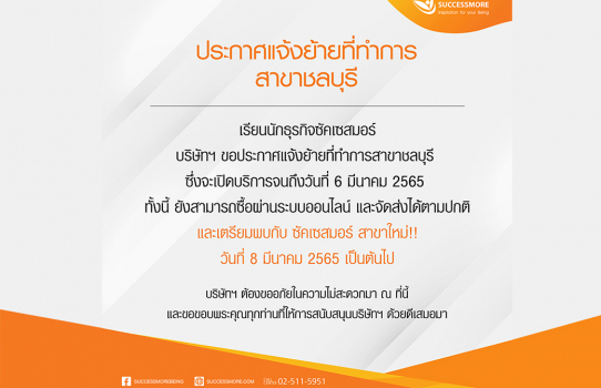 แจ้งย้ายที่ทำการสาขาชลบุรี