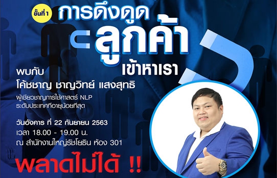คอร์สอบรมพิเศษกับ 3 ขั้นตอนสู่การเป็นนักขายมืออาชีพ ในหัวข้อ การดึงดูดลูกค้าเข้าหาเรา ” วันอังคาร ที่ 22 กันยายน 2563