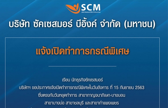 ประกาศ!! แจ้งเปิดทำการกรณีพิเศษ ในวันอังคาร ที่ 15 กันยายน 2563