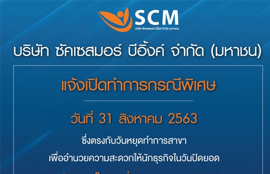 บริษัทฯ ขอแจ้งเปิดทำการกรณีพิเศษ ในวันที่ 31 สิงหาคม 2563
